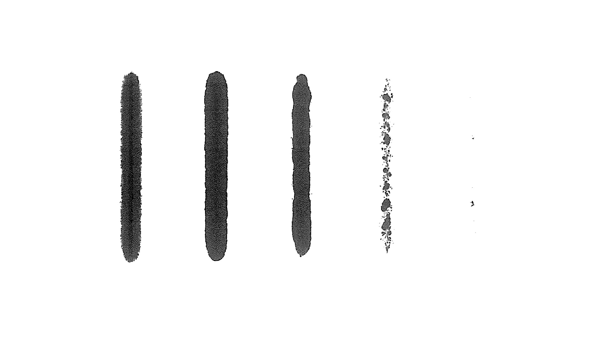 After using the axidraw machine to draw a singular line 600 times, the result at the first glance might not look like much, but reveals a deeper message when we flip through the stack of paper. The ink starts to spread over the first piece of paper, almost 5 times thicker than the initial line. Some tearing is present over the placement of the initial line, indicating the existence of friction. When we flipped through the stack of paper, we realised that it had bled through 5 pieces of paper, showing some sort of patterns on the 4th page, perhaps influenced by the texture of paper.